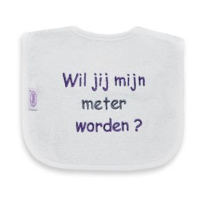 Wil je een slabbetje met eigen gemaakte tekst neem dan contact met ons op. Wij borduren en bedruken eventueel naar eigen wens.